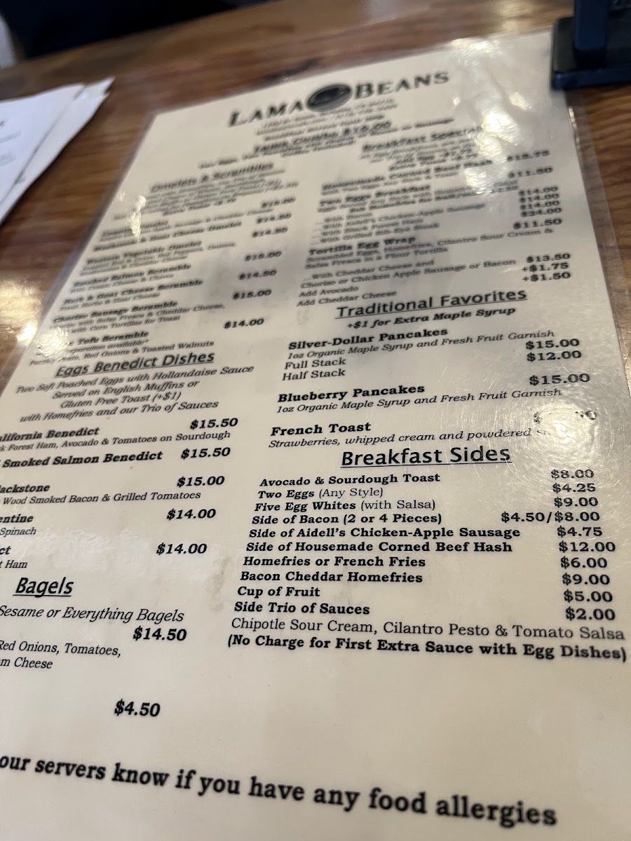 Lama Beans not only serves hearty portions that leave you feeling satisfied but also respects dietary preferences, as evidenced by their ability to tailor dishes like the California Benedict to be dairy-free and gluten-free without compromising on flavor. This flexibility has earned them loyal fans who appreciate a menu that caters to diverse dietary needs.